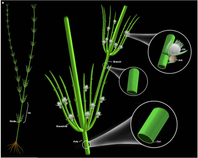 该化石主轴上有轮生小枝,且有节与节间分化,节间上覆盖有纵向排列的皮层细胞,并且小枝也具有皮层细胞。此外,还发现了稀少的可能是覆盖藏卵器的外壳化石。它们的叶状体和现生的轮藻非常接近,表明轮藻叶状体演化非常保守。同时,由于其皮层细胞更多,缺乏复杂的外壳和钙化藏卵器等特征,所以推断是轮藻纲的基干类群。研究团队根据红藻门、绿藻门、轮藻门中6个纲,以及陆地植物各门类共13个类群62个性状特征的系统发育分析,进一步确认了陆地植物与轮藻门的演化关系。