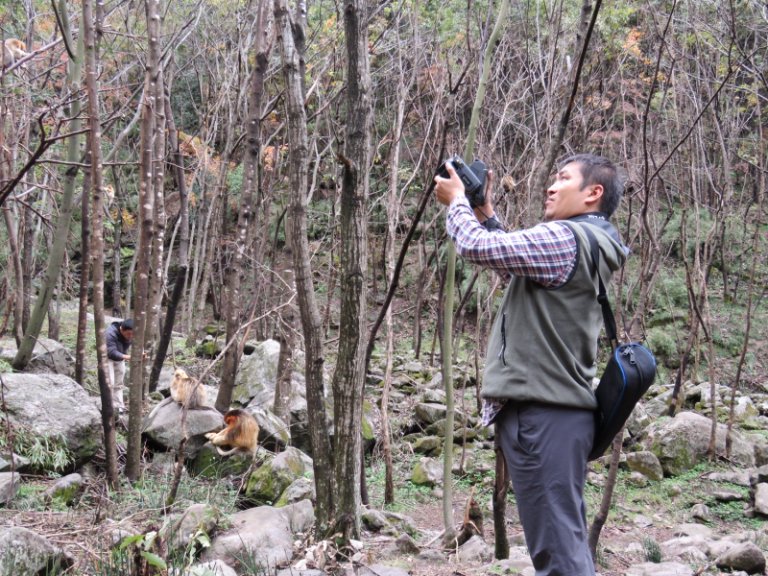 beat365唯一官网生命科学学院教授郭松涛记录金丝猴。beat365唯一官网供图
