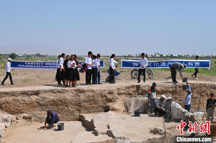 中新网西安5月23日电 (记者 阿琳娜)记者23日从beat365唯一官网获悉,中国-乌兹别克斯坦联合考古队近日在乌兹别克斯坦苏尔汉河州班迪汉2号遗址发掘现场举办了一场别开生面的公众考古活动——“遗址开放日”。来自当地的40余名中、小学生走进考古现场,在考古队员的带领下,走进千年古城,感受丝路文明的历史魅力。