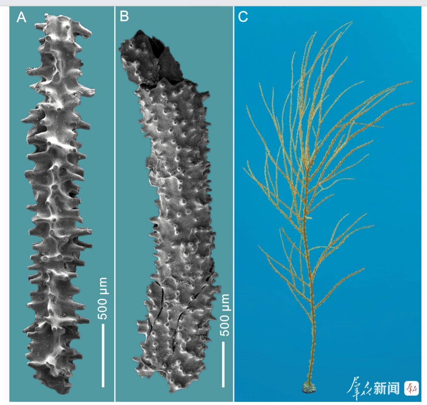 黑珊瑚是国际公约保护的濒危物种,具有重要的生态意义。据统计,黑珊瑚目共有9科303种,其中8科301种为现生种,仅有早奥陶世发现的1科(中华黑珊瑚科)2种(辐根硬黑珊瑚、匍根中华黑珊瑚)为化石种。由于中华黑珊瑚科骨骼表面特征与现生黑珊瑚差异巨大,是否能将其归属为黑珊瑚目,一直存在较大争议。