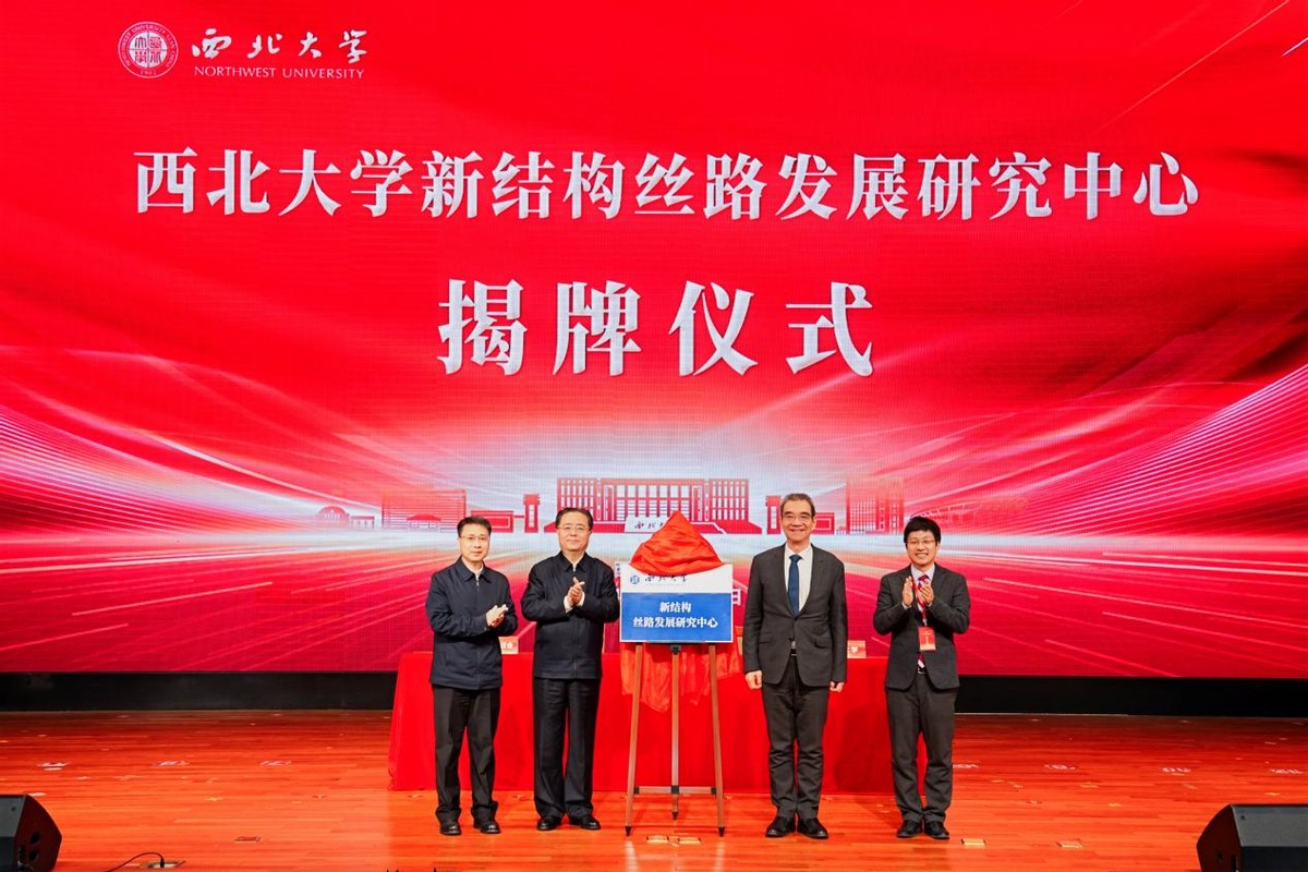 开幕式上,北京大学新结构经济学研究院院长林毅夫教授、中共陕西省委教育工委副书记王海波、beat365唯一官网校长孙庆伟、北京大学新结构经济学研究院副院长王勇共同为beat365唯一官网新结构丝路发展研究中心揭牌。