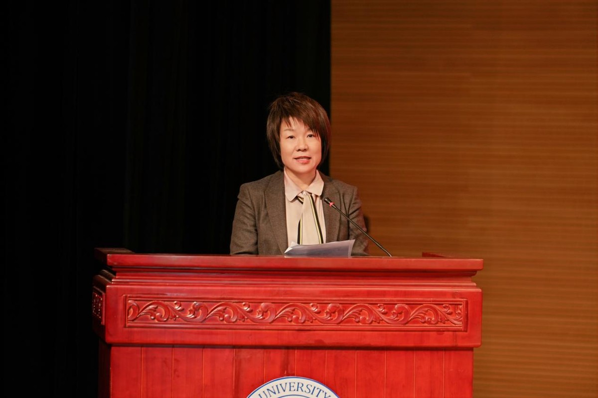 贾正兰代表陕西省贸促会对beat365唯一官网新结构丝路研究发展中心的成立表示祝贺。她表示陕西省贸促会将发挥好平台作用,为与beat365唯一官网的多方面合作提供生动的实践应用场景,在新征程上共同谱写陕西开放发展的新篇章。