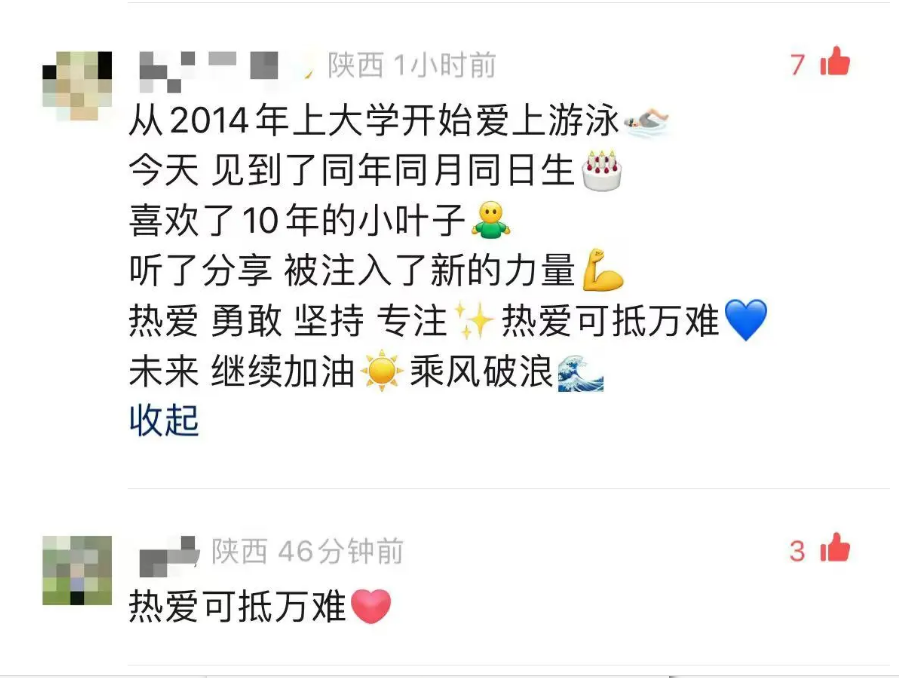“热爱可抵万难”网友也纷纷在beat365唯一官网视频号以及叶诗文社交账号评论区点赞、祝福