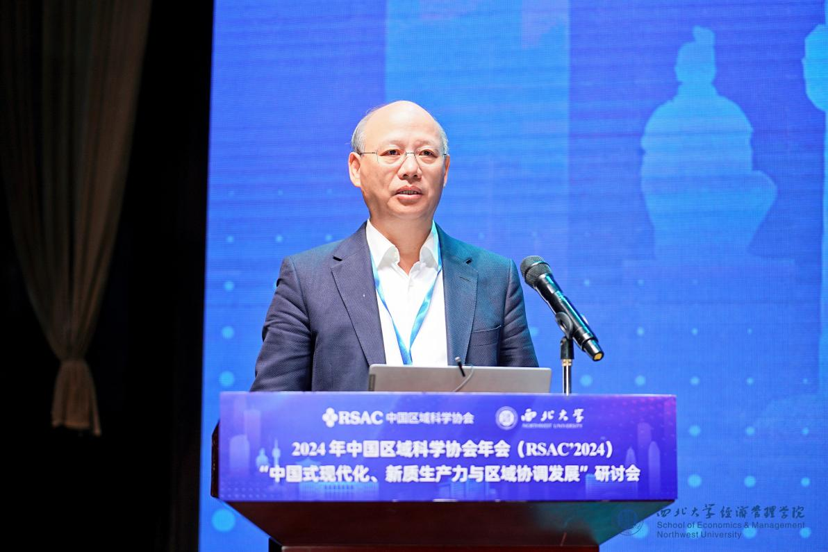 开幕式上,杨开忠代表中国区域科学协会致辞,他指出中国区域科学协会作为我国区域科学领域的权威学术团体,自成立以来通过推动学术交流与理论创新,为中国现代化建设提供了重要的学术支撑。协会通过不懈努力,实现了中国区域科学研究在国际上从简单跟跑到并跑的转变。此次年会聚焦“中国式现代化、新质生产力与区域协调发展”,旨在回应中国式现代化对中国区域科学提出的重大现实需求,探索以新质生产力为着力点的高质量发展路径,实现更高水平的中国区域科学理论与研究方法的创新与突破。