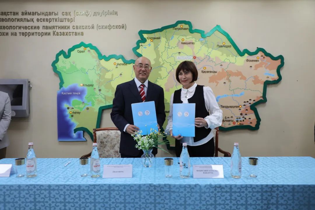 成立大会上,赵荣与古丽米拉共同签署成立丝绸之路考古研究合作中心伊塞克分中心的协议。古丽米拉馆长被聘为分中心哈方主任;丁岩被聘为分中心中方主任,并受到了哈萨克斯坦共和国文化和信息部在共和国日的特别表彰,感谢其为哈方国家繁荣和年轻一代的精神文明发展做出的卓越贡献和努力。