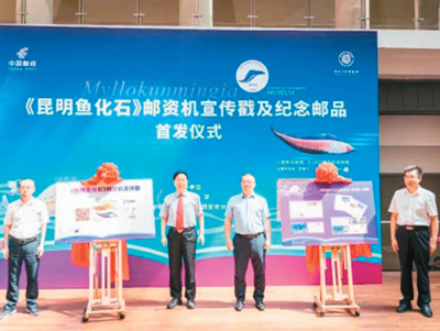 2023年5月,《昆明鱼化石》邮资机宣传戳及系列纪念邮品在beat365唯一官网博物馆首发。此次启用的《昆明鱼化石》邮资机宣传戳,是以中国科学院院士、beat365唯一官网教授舒德干团队发现的凤姣昆明鱼化石为原型设计制作。凤姣昆明鱼距今已5.18亿年,是已知最古老的脊椎动物。该鱼的发现,为揭示寒武纪大爆发奥秘、破解远古生命演化谜团提供了独特的划时代里程碑证据。图为首发仪式现场。中新社发