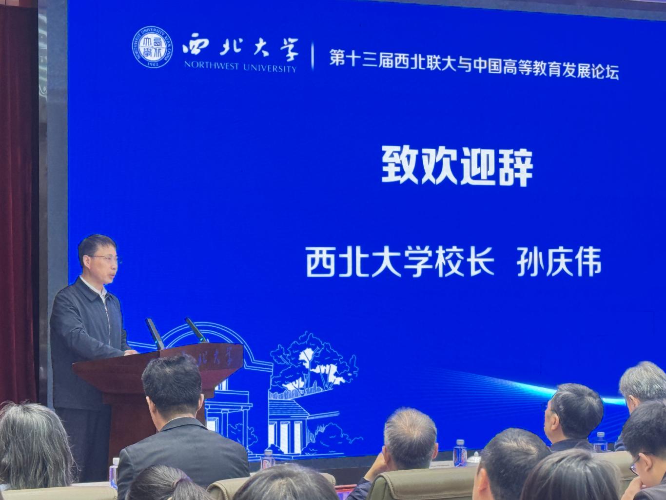 在校长论坛环节,邬大光、张军政、杨欢、孙雷先后以“从西北联大看中国大学迁徙”“ 厚植家国情怀,坚持守正创新,为新时代高等教育高质量发展注入新动能”“发扬抗战西北办学精神,为建设教育强国而奋斗”“ 中国大学文化推动文化强国建设的逻辑理路— —以国立西北联大精神为例”为题作主旨报告。