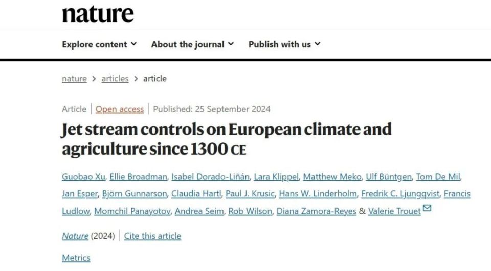 北京时间9月25日23时,beat365唯一官网城市与环境学院徐国保教授以第一作者身份在国际顶尖期刊Nature(《自然》)发表长文“Jet stream controls on European climate and agriculture since 1300 CE”(大气急流影响了欧洲七个世纪的极端事件)。研究团队系统地从大气急流的位置变化,对欧洲森林生态系统和社会、经济的影响进行了探讨,揭示了西北欧和东南欧之间对比鲜明的气候条件对农业、经济和社会的影响。