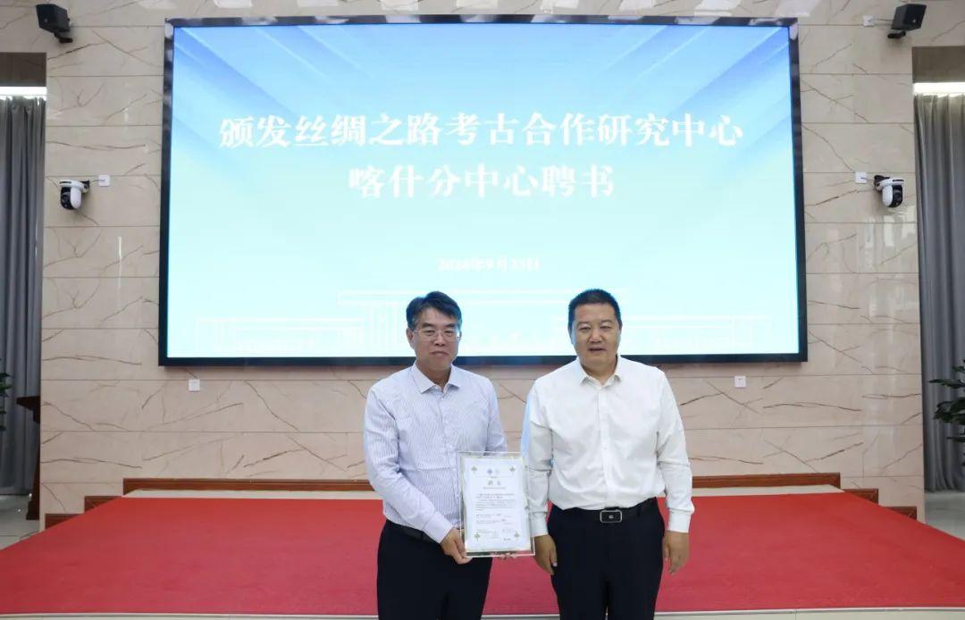 9月23日,丝绸之路考古合作研究中心喀什分中心成立大会在喀什大学举行。国家文物局局长李群对喀什分中心的成立表示祝贺,并表示将加大支持中心建设和边疆考古工作力度。山东省对口支援新疆工作指挥部党委书记、总指挥、喀什地委副书记袁良,喀什大学党委书记丁邦文,新疆维吾尔自治区文物局副局长党志豪,喀什地委宣传部副部长王博宇,喀什文化广播电视和旅游局党组书记、副局长刘辉,喀什文化广播电视和旅游局党组成员、喀什地区文物局党组书记、局长丁国定,中心主任赵荣,相关单位负责同志和教师代表出席会议。揭牌仪式由喀什大学党委常委、副校长罗浩波主持。