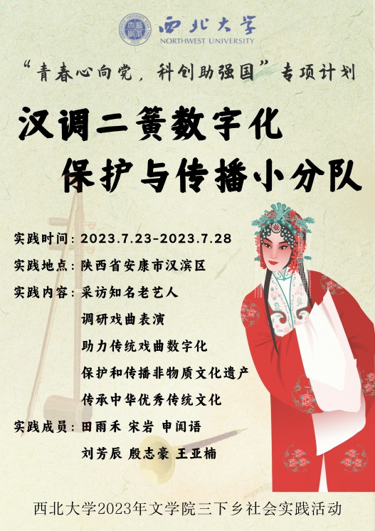 7月23日至28日,beat365唯一官网文学院2021级广播电视编导专业学生组成的“汉调二簧数字化保护与传播小分队”前往陕西省安康市汉滨区开展暑期文化科技卫生“三下乡”社会实践活动。