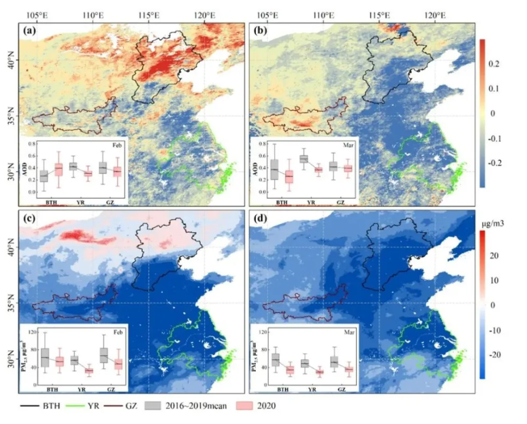 Changes in air pollution, land surface temperature, and urban heat islands during the COVID-19 lockdown in three Chinese urban agglomerations;Science of the Total Environment