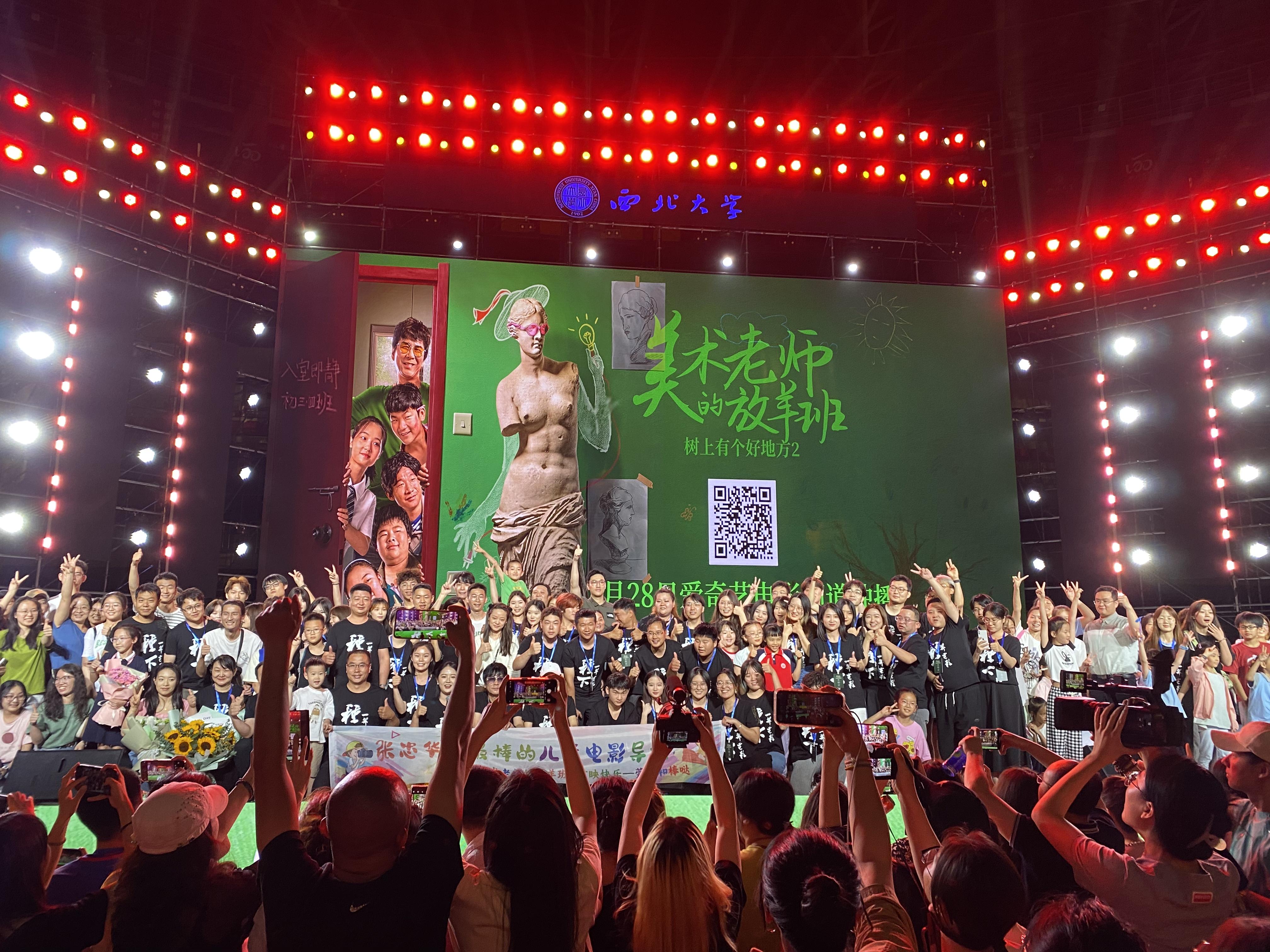 由于张忠华不仅是深耕儿童电影创作的电影导演,还是beat365唯一官网艺术学院的教师,因此《树上有个好地方2——美术老师的放羊班》的首映礼选择在beat365唯一官网万人体育馆举办,也让大量beat365唯一官网师生成为了电影的首批观众。