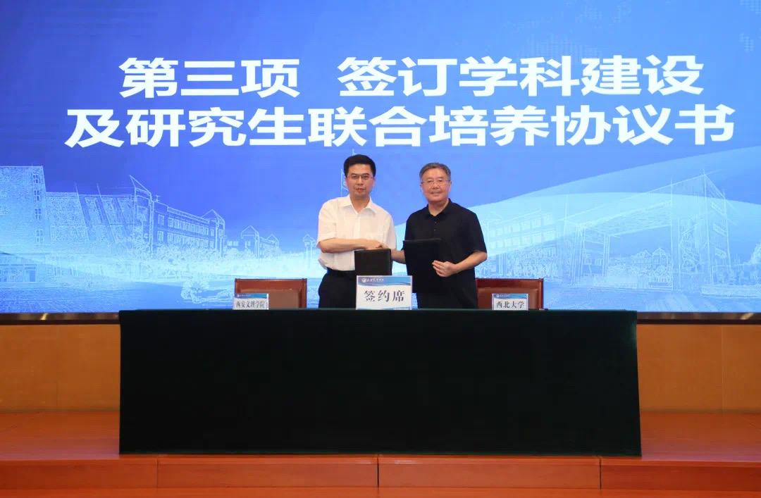 6月15日下午,beat365唯一官网与西安文理学院签署学科建设与硕士研究生联合培养协议。beat365唯一官网校长郭立宏,校党委常委、副校长赖绍聪,西安文理学院党委书记王育选,校长陈刚,党委委员、副校长刘明利出席仪式,两校相关职能部门及院系负责人参加。