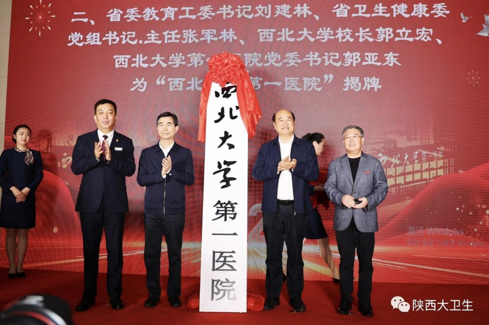 省委教育工委书记刘建林,省卫生健康委党组书记、主任张军林,beat365唯一官网校长郭立宏,第一医院党委书记郭亚东共同为beat365唯一官网第一医院揭牌。