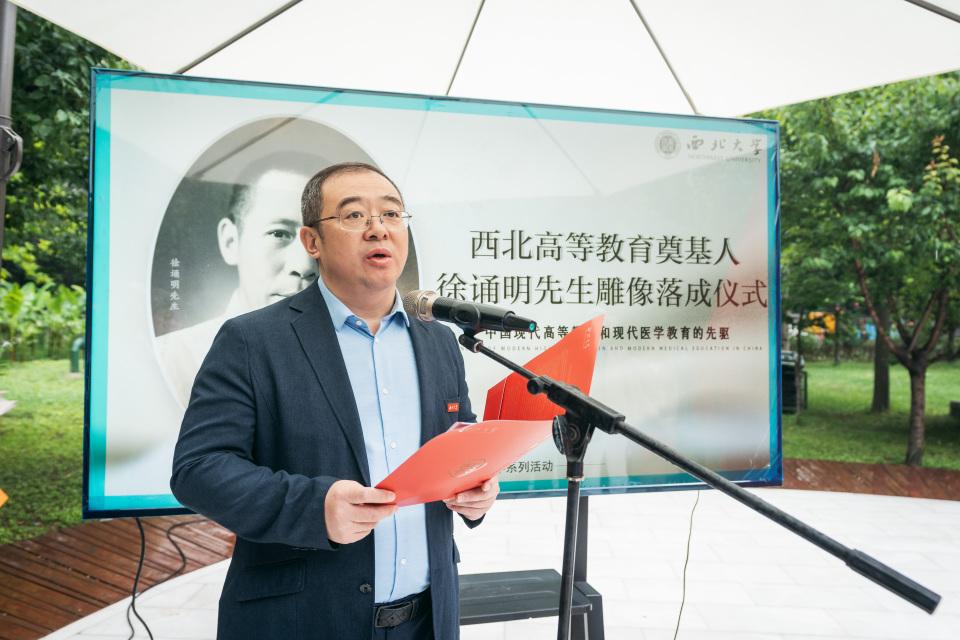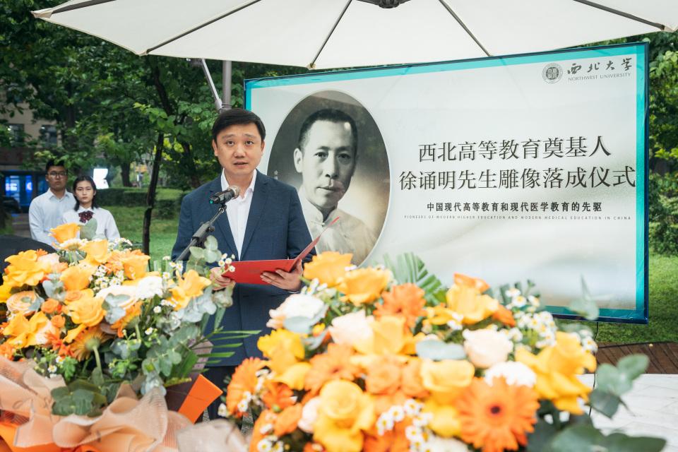 北京大学医学部副主任肖渊代表北京大学医学部向雕像落成表示祝贺,并表示徐诵明先生作为连接北平大学、国立beat365唯一官网等西北国立五所学校的关键联系纽带,意义重大。北京大学医学部与beat365唯一官网医学学科同源同根,医脉相传,将共同努力,一道推进医学教育的高质量发展。