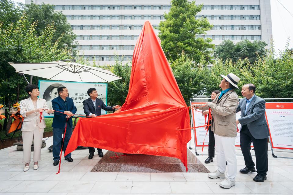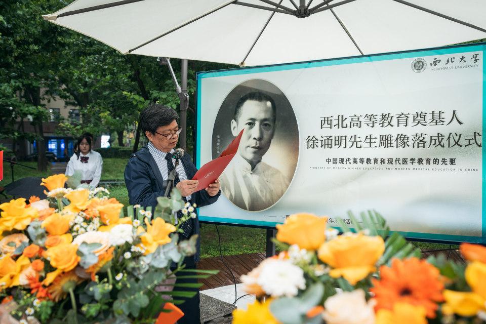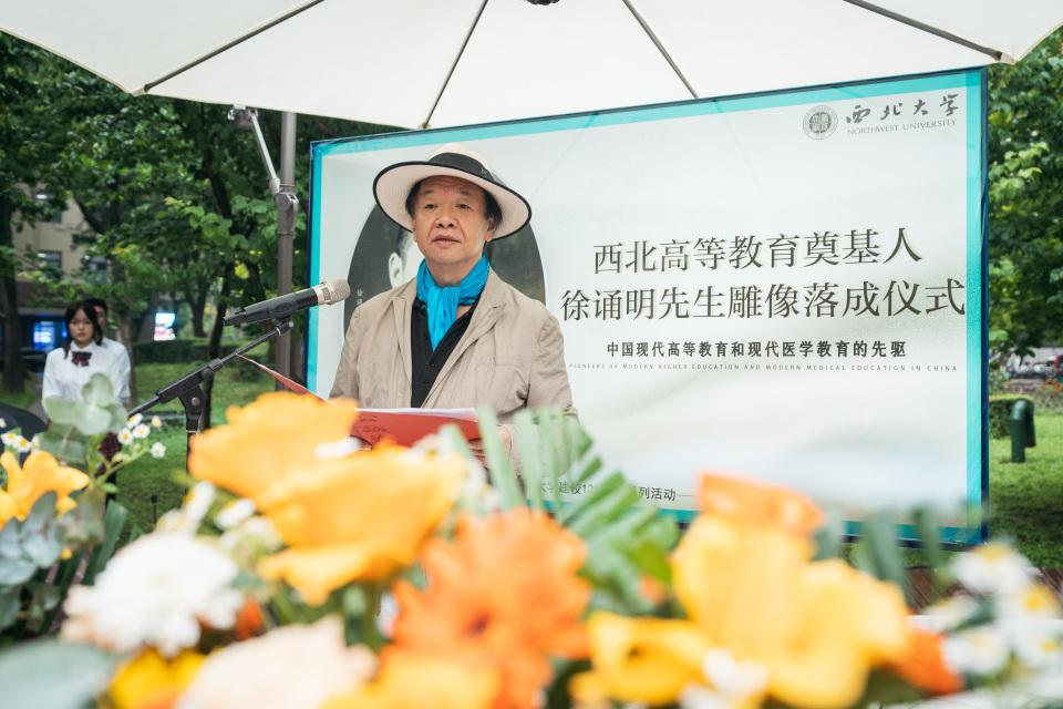 西北联大与大学文化研究院院长姚远为与会嘉宾和师生阐释了雕像碑文,二百余字浓缩了徐诵明先生波澜壮阔的人生和重要的成就。