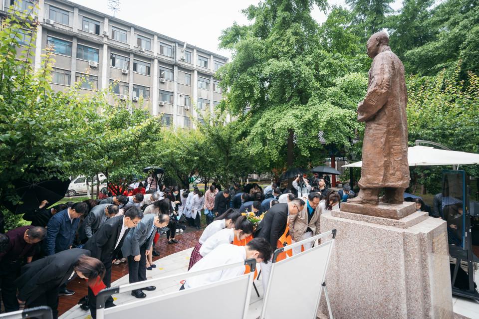 仪式上以视频形式展示了吴为山设计创作徐诵明先生雕像的过程。徐诵明亲属代表和医学院学生代表向徐诵明先生敬献花篮。