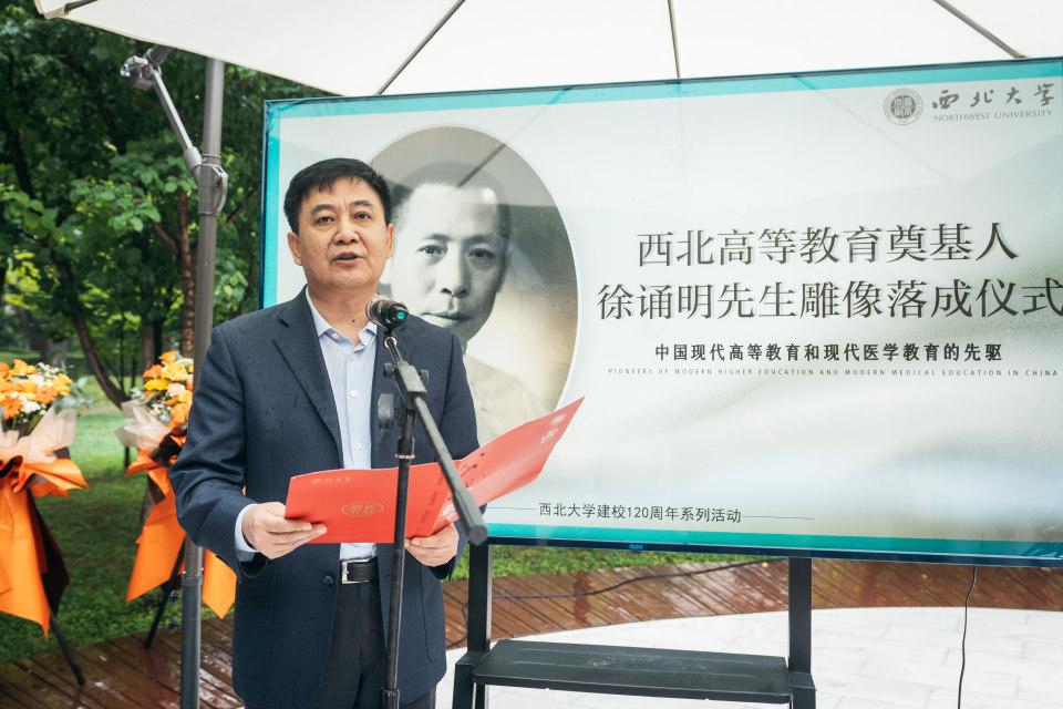 校党委副书记张清宣读了十一届全国政协副主席陈宗兴的贺信。在贺信中,陈宗兴强调敬立徐诵明先生雕像,就是要继往开来,铭记先贤拓荒西北高等教育的责任感、使命感和高远追求。