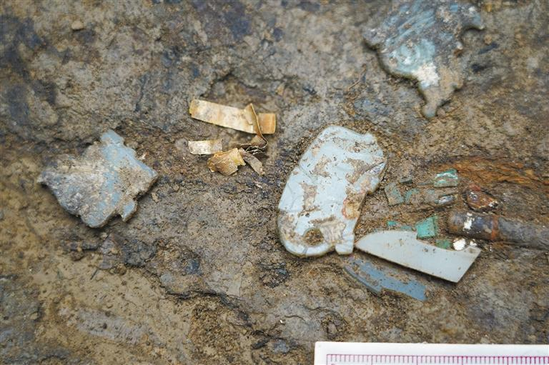 西头遗址M99墓室出土的金箔、玉器