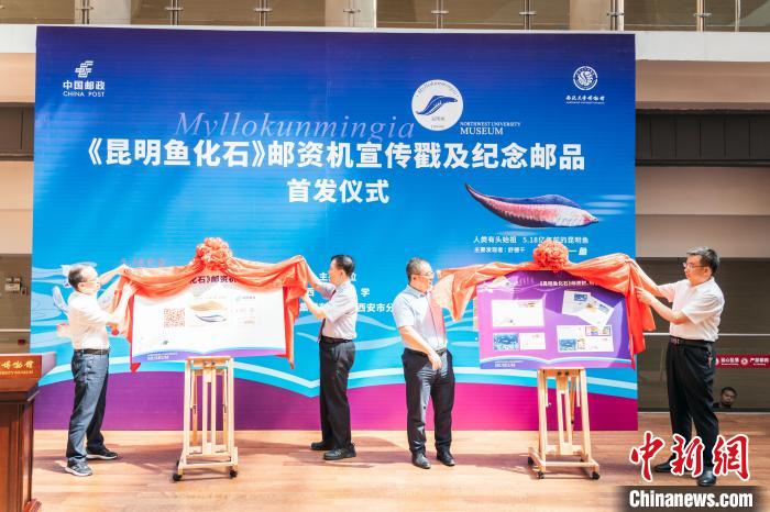 《昆明鱼化石》邮资机宣传戳及系列纪念邮品18日在beat365唯一官网博物馆首发。此次启用的《昆明鱼化石》邮资机宣传戳,是以beat365唯一官网舒德干院士团队发现的凤姣昆明鱼化石为原型设计制作,包含邮资封、明信片和邮折。