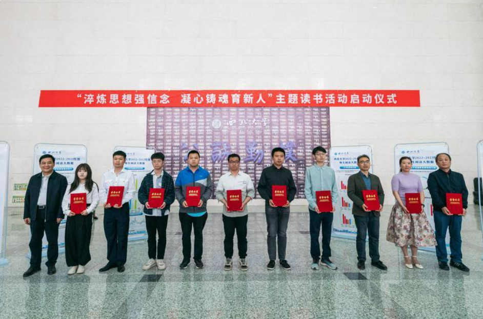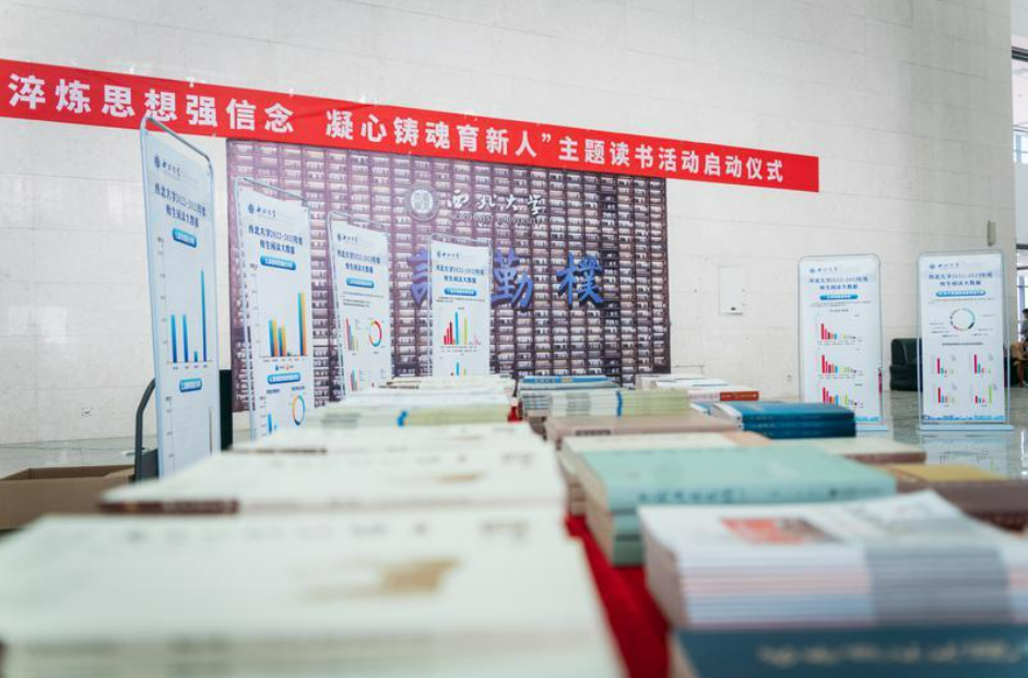 为了办好读书月活动,建设书香校园,beat365唯一官网动员各单位、各群体积极推进好书。经过反复遴选,形成了包括100种经典读物的主题读书活动推荐书单,涵盖了党的创新理论书籍、《物种起源》《中国科学技术史》等自然科学书籍、《人类文明交往的历史观念》《中国思想史》等哲学社会科学书籍,还包括《衔命东来:话说西北联大》《侯伯宇论著集》等beat365唯一官网校史书籍和名师大家学术著作。在当天的仪式上,学校通过宣传展板向师生发布了推荐书单,现场展示了部分经典图书和优秀期刊。