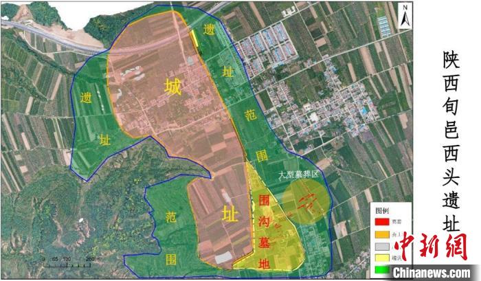 此外,西头遗址考古为寻找文献所载西周“豳师”提供了重要线索。2022年,考古人员通过勘探,在西头遗址西侧区发现了一处面积约80万平方米的城址,现存夯土城墙、壕沟及道路遗迹,通过对城址南城墙进行局部解剖,并结合城址内遗存判断该城的年代为西周早中期,同时基本确认城址北、东、南三面城墙分布范围。