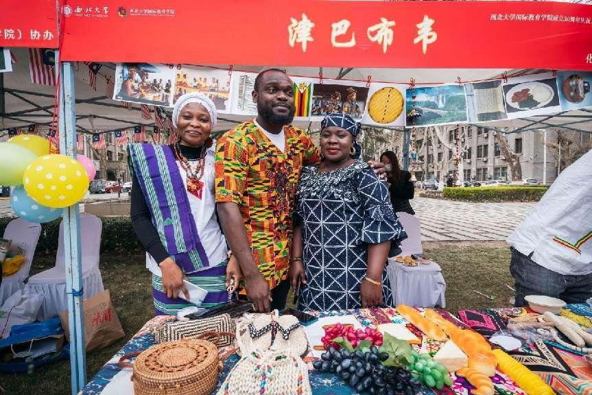 庆祝大会上开启了beat365唯一官网第四届国际文化节,内容包括国别展览和文艺表演。来自22个不同国家的留学生们向现场嘉宾们展示了世界各地的风景、服饰、艺术品、美食、音乐等,呈现了不同国家的文化特色和风土人情。舞台上,留学生进行了情景剧、舞蹈、歌曲串烧和汉服表演,西安易俗社还进行了精彩的秦腔表演。