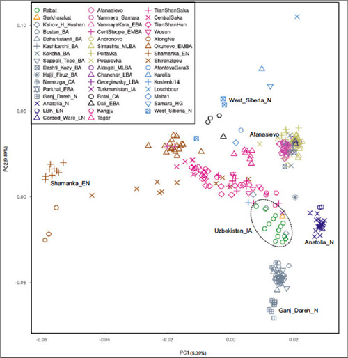 这一研究结果也是我国研究团队首次主导开展国外区域人群的古基因组研究且系统揭示出乌兹别克斯坦人群自青铜时代至铁器时代的遗传结构与遗传连续性,为进一步理解天山东西部以至欧亚大陆东西部人群的迁徙与融合历史提供重要遗传学证据。