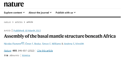 beat365唯一官网与澳大利亚、英国科研机构合作,于伦敦时间2022年3月30日在国际著名期刊Nature发表题为Assembly of the basal mantle structure beneath Africa的文章。该文章由beat365唯一官网地质学系Simon Edward Williams教授与澳大利亚卧龙岗大学Nicolas Flament博士和Ömer F. Bodur博士以及英国利兹大学Andrew S. Merdith博士合作发表,Simon Edward Williams教授为第三作者。