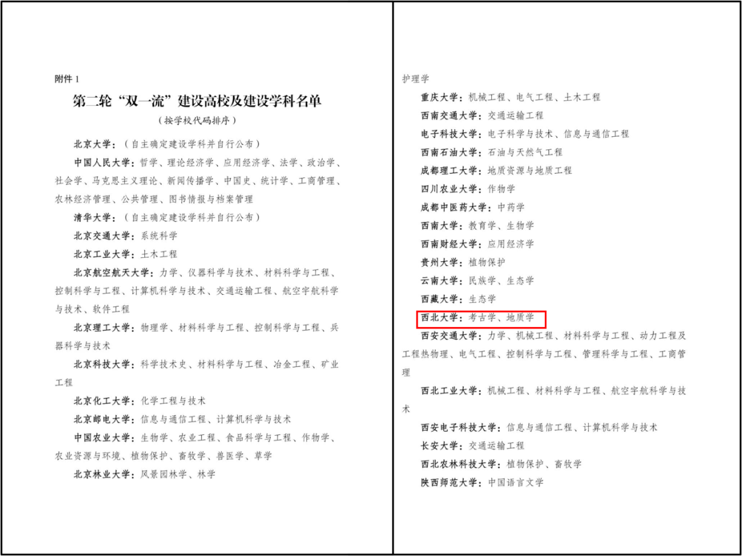 2月14日,教育部、财政部、国家发展改革委联合发布通知,公布第二轮“双一流”建设高校及建设学科名单,beat365唯一官网考古学、地质学成功入选新一轮“双一流”建设学科名单。地质学顺利通过首轮周期总结评估后再次入选,考古学成为陕西省属高校唯一新增建设学科,学校“双一流”建设圆满实现“保一争二”预期目标。