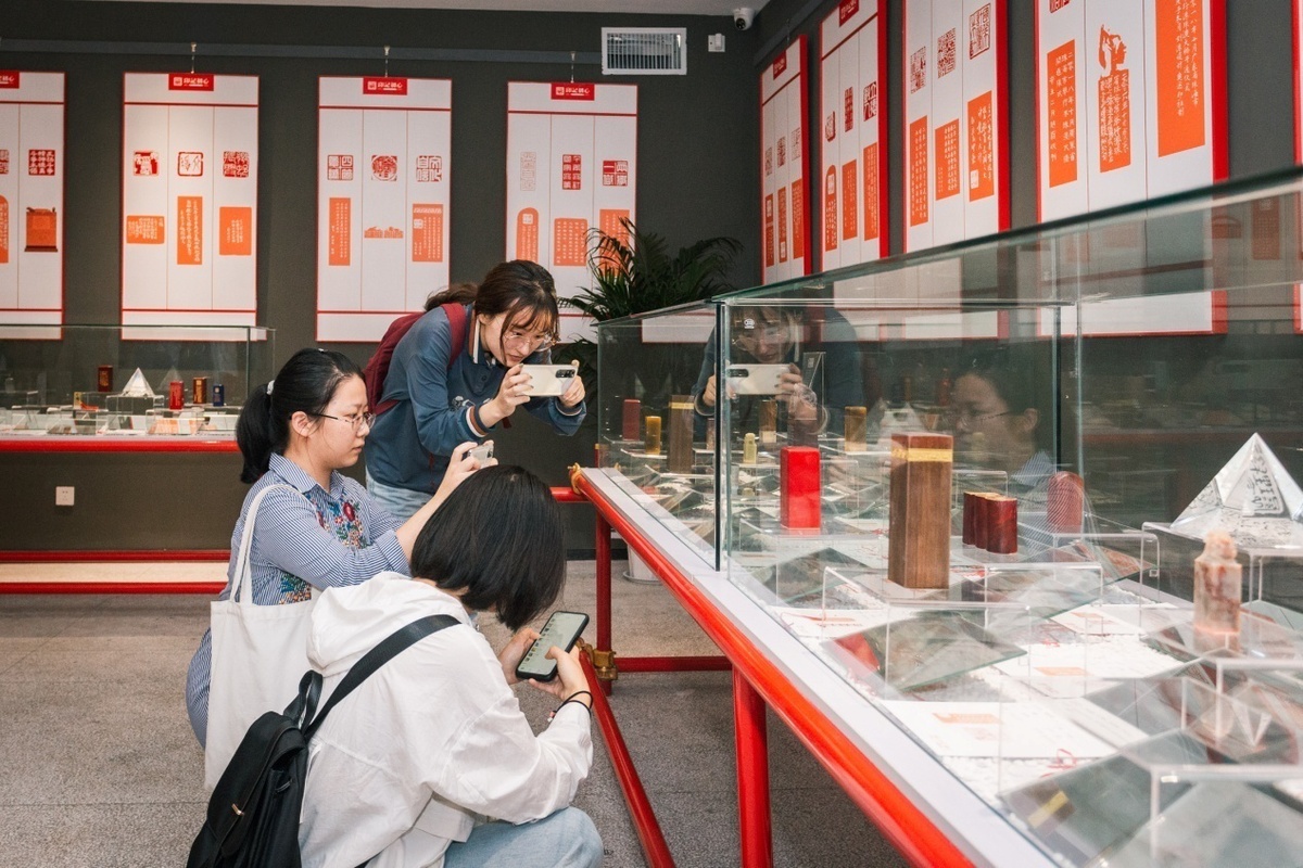 从传统石材、陶瓷到树脂、石墨等新材料,从传统刀刻到机打、彩喷等新工艺,从传统小篆到卡通、国潮新字体,“印记初心——大众篆刻作品展”用一件件作品告诉青年学生,传统文化能够在时代潮流中焕发出耀眼的光芒,从“小众私藏”走向“大众分享”。