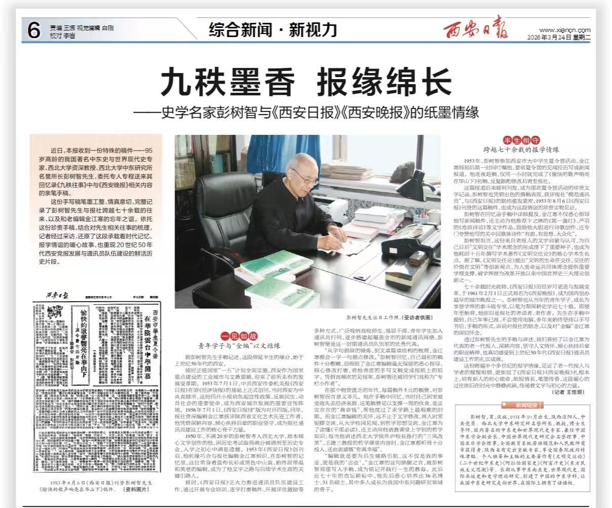 彼时,《西安日报》正大力推进通讯员队伍建设工作,通过开展专业培训、逐字打磨稿件、开展评优激励等多种方式,广泛吸纳高校师生、基层干部、青年学生加入通讯员行列,逐步搭建起覆盖全市的新闻通讯网络,彭树智便是这一时期通讯员队伍里的优秀代表。