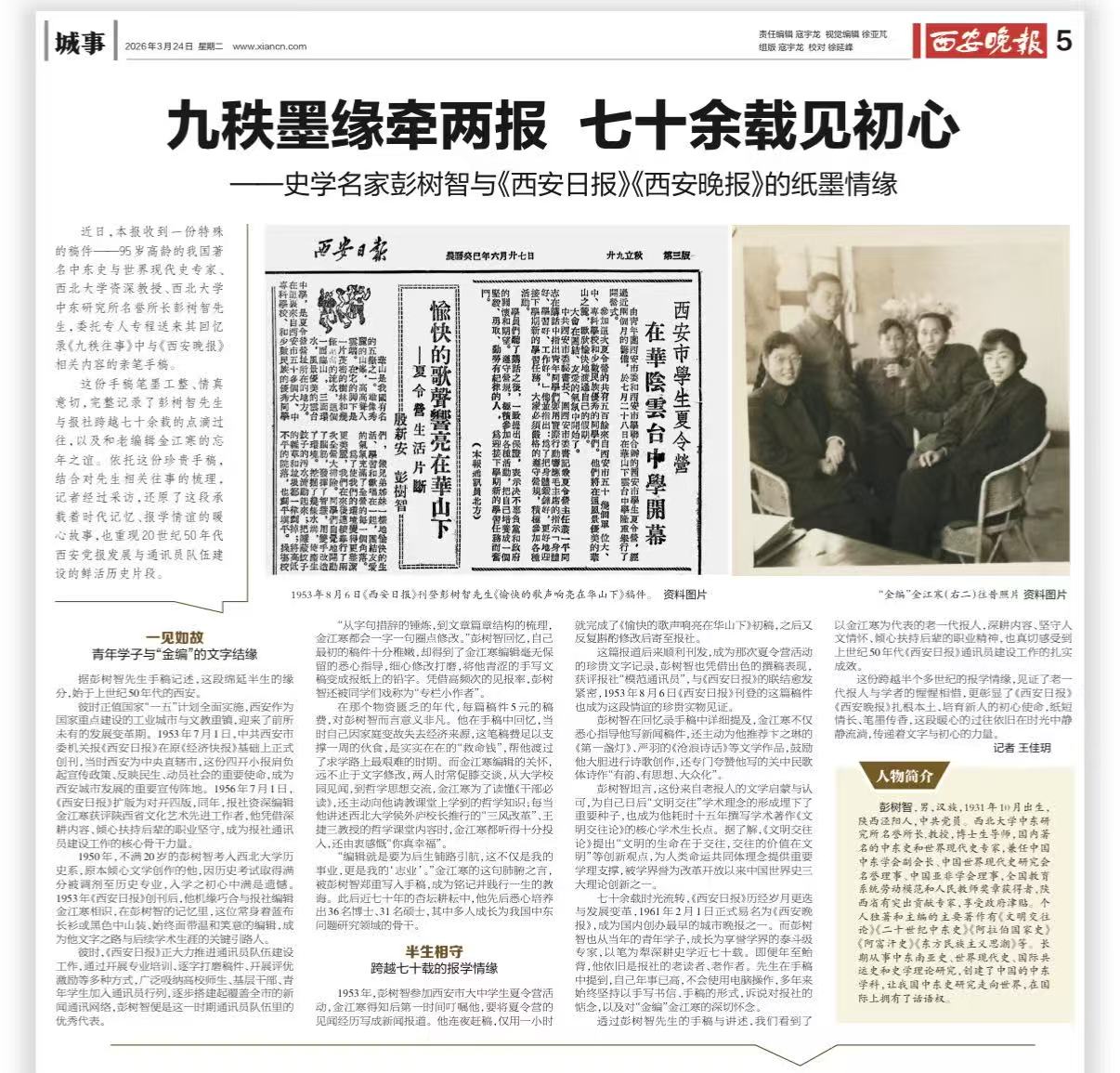 这份跨越半个多世纪的报学情缘,见证了老一代报人与学者的惺惺相惜,更彰显了《西安日报》《西安晚报》扎根本土、培育新人的初心使命,纸短情长,笔墨传香,这段暖心的过往依旧在时光中静静流淌,传递着文字与初心的力量。(记者 王佳玥)