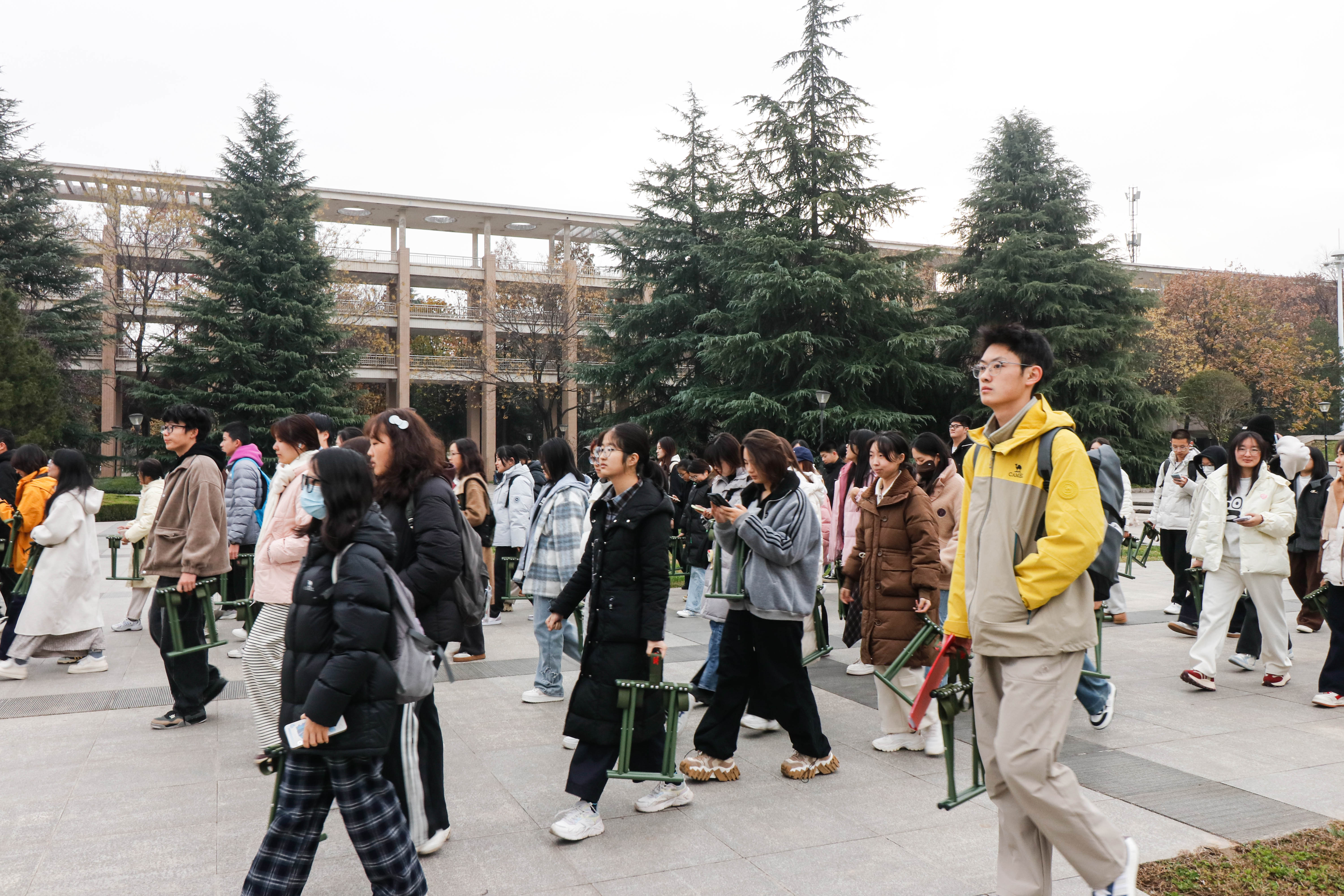 课程从“xida星”和“母校铭”百廿校庆文化景观开始。同学们在老师们的带领下,从中心广场穿行而过,罗健夫先生的赤诚、齐越先生的坚守在雕塑旁愈发清晰;“国立西北联合大学校歌纪念石”前,铿锵有力的歌词让同学们深切感受烽火中的办学初心;“学堂厅”的屋檐下,西大的建校脉络在讲解中逐渐明晰。沿校园环道,王戍堂先生的学术坚守、熊庆来先生的育人情怀、高鸿先生的科研热忱、何炼成先生的经世担当、傅角今先生的地理深耕、黄文弼先生的考古初心、侯伯宇先生的高尚无私、李仪祉先生的水利宏愿、张凤翙先生的教育星火——一座座人物雕塑前,英模事迹通过师长与学长学姐的生动讲述变得可感可及。在郭峰事迹展厅内,珍贵的史料与感人的故事,更让同学们对“奉献”二字有了真切体悟。行程的终点,所有人聚集在“国立西北联合大学”影壁前,共同解锁“公诚勤朴”校训背后的育人故事。