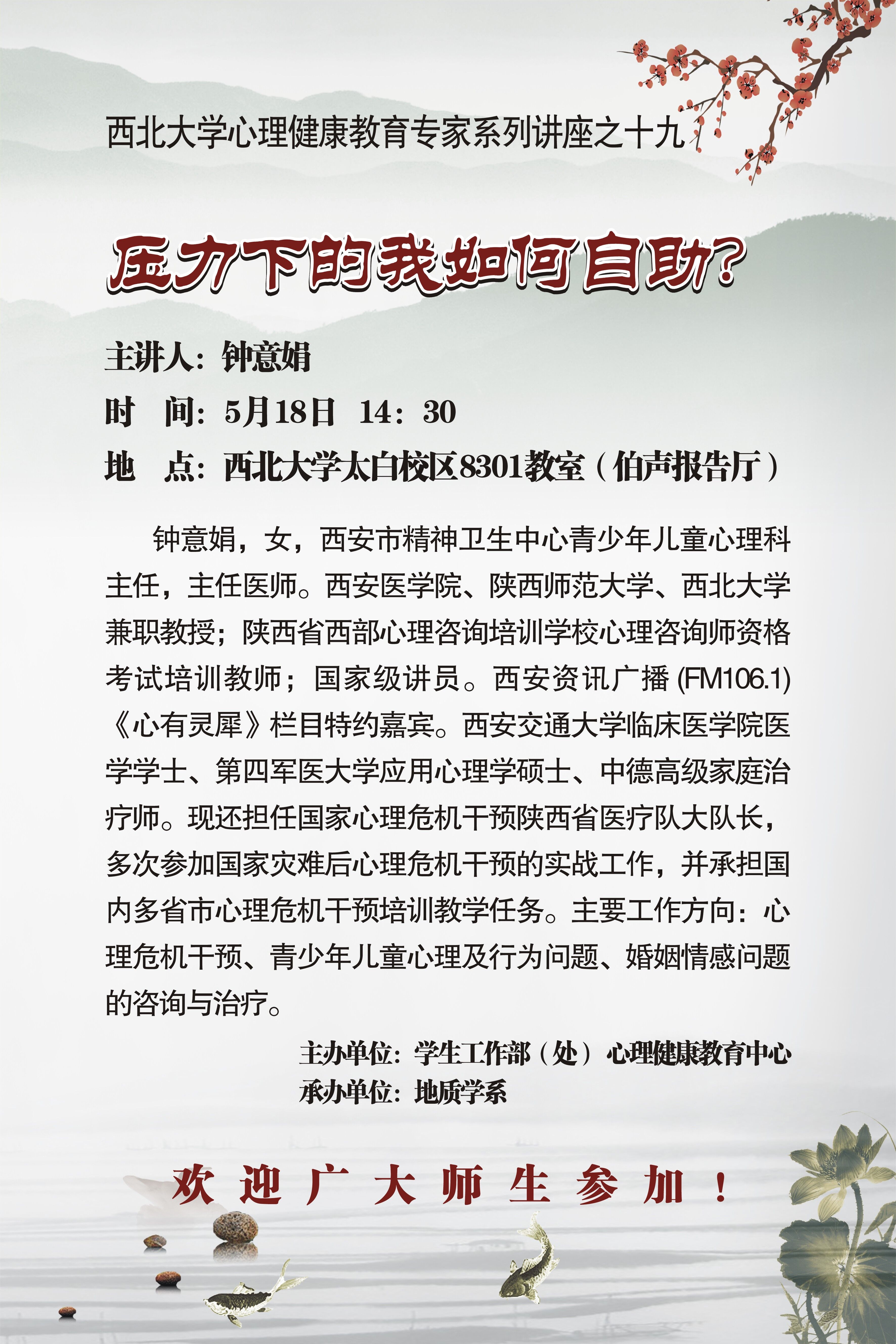 beat365唯一官网心理健康教育专家系列讲座之十九|钟意娟:压力下的我如何自助?