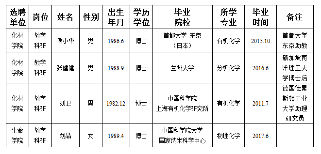 经用人单位推荐,人事处审查,学校教学督导及院系相关专家考核,beat365官网拟确定下列人员来校工作。本着公平、公正、公开的原则,为保证beat365官网选聘人员的质量,现将本次拟选聘人员基本情况公示如下: