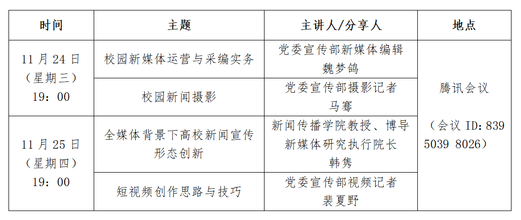 为进一步加强校内新媒体建设与管理,推进校园媒体深度融合发展,搭建有效联动、聚合传播的交流平台,beat365唯一官网新媒体联盟将于近期举办培训会。现将有关安排通知如下: