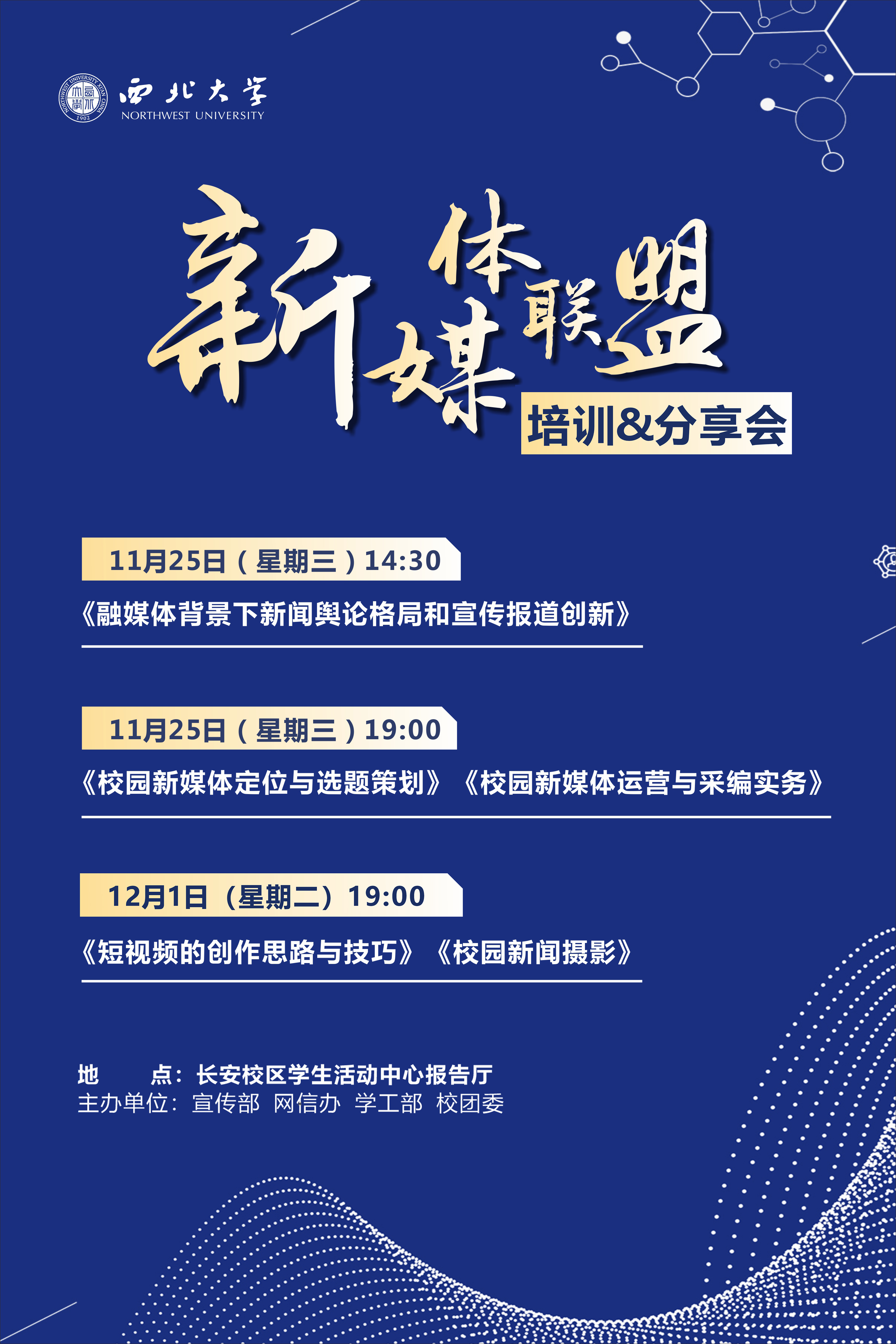 为进一步加强校内新媒体建设与管理,推进校园媒体深度融合发展,搭建有效联动、聚合传播的交流平台,beat365唯一官网新媒体联盟将于近期举办培训分享会。现将有关安排通知如下: