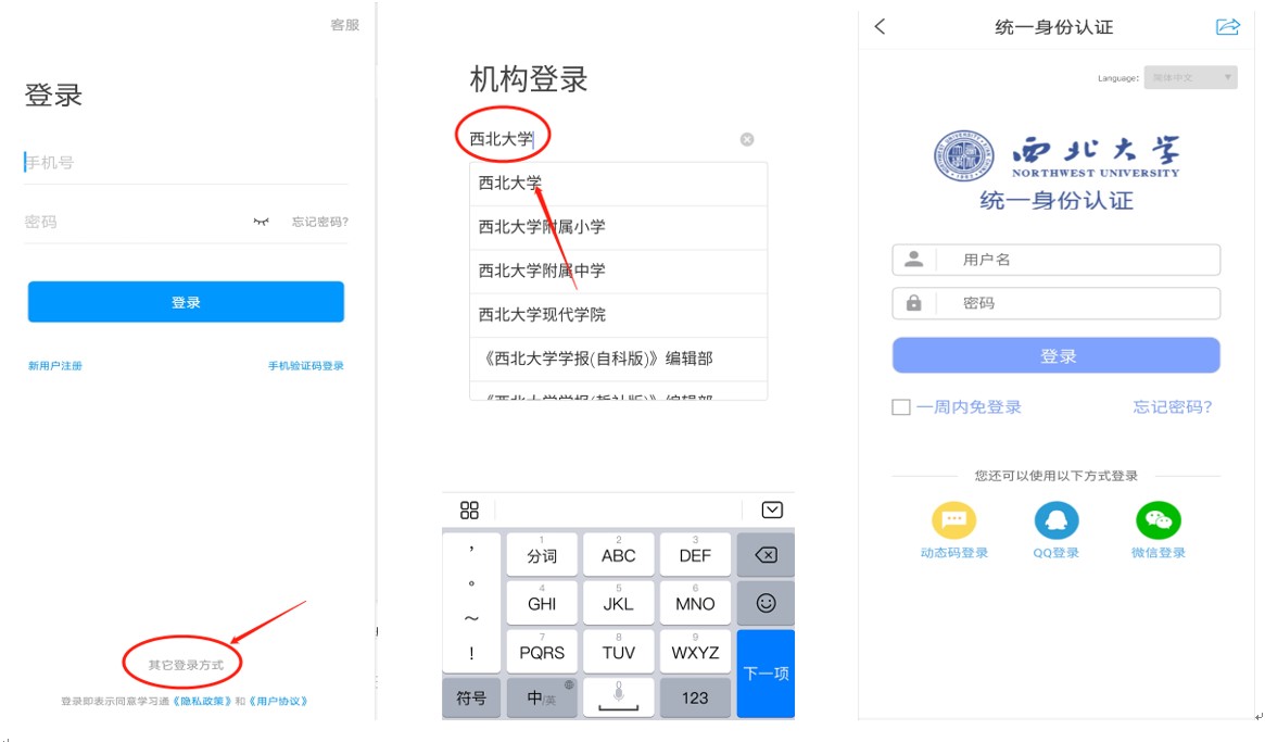 5.下载过后,进入登录页面——“其它登录方式”——单位栏输入“beat365唯一官网”——跳转到学校统一身份认证登录。