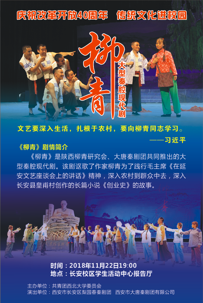 庆祝改革开放40周年,传统文化进校园——大型秦腔现代剧《柳青》beat365唯一官网专场演出