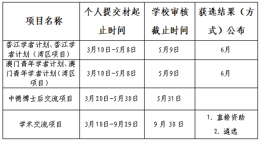 为加快培养高层次创新型青年人才,加强博士后国(境)外学术交流与合作,2025年人力资源社会保障部、全国博士后管理委员会将继续实施香江学者计划、澳门青年学者计划、中德博士后交流项目和博士后国(境)外学术交流项目。同时,为支持粤港澳大湾区高水平人才高地建设,2025年将首次开展香江学者计划(湾区项目)、澳门青年学者计划(湾区项目)。为做好项目申报工作,现将有关事项通知如下: