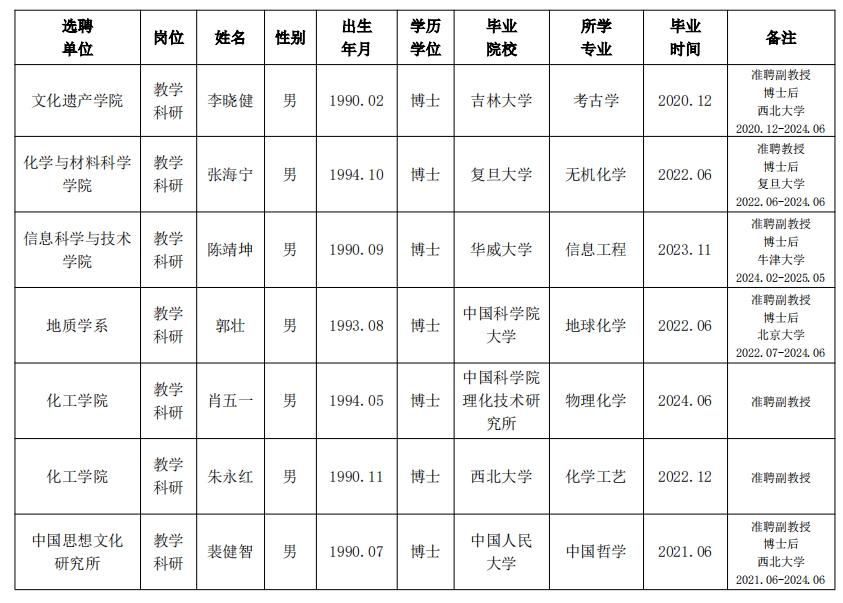 经用人单位推荐,人力资源部审查,学校教学督导及院系相关专家考核,学校教师高级职务特别评审,beat365官网拟确定下列人员来校工作,聘任方式为事业编特别选聘。本着公平、公正、公开的原则,现将本次拟选聘人员基本情况公示如下: