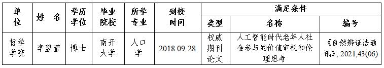 根据《beat365唯一官网选聘毕业生暂行办法》(西大人〔2015〕43号)相关规定,经本人申请,单位考核推荐,学校职能部门审查,拟同意下列人员由人事代理转聘事业编制,基本情况公示如下: