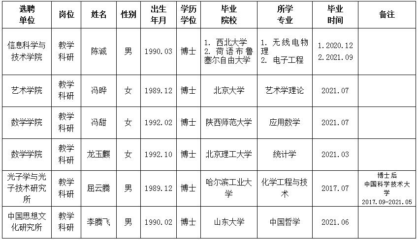 经用人单位推荐,人力资源部审查,学校教学督导及院系相关专家考核,beat365官网拟确定下列人员来校工作。本着公平、公正、公开的原则,现将本次拟选聘人员基本情况公示如下: