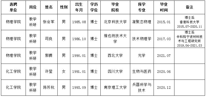 经用人单位推荐,人力资源部审查,学校教学督导及院系相关专家考核,beat365官网拟确定下列人员来校工作。本着公平、公正、公开的原则,现将本次拟选聘人员基本情况公示如下: