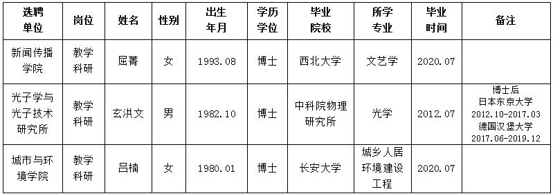 经用人单位推荐,人力资源部审查,学校教学督导及院系相关专家考核,beat365官网拟确定下列人员来校工作。本着公平、公正、公开的原则,现将本次拟选聘人员基本情况公示如下: