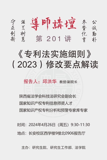 导师讲坛第201讲:《专利法实施细则》(2023)修改要点解读