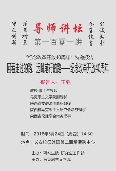 导师讲坛第101讲:回看走过的路、远眺前行的路——纪念改革开放40周年