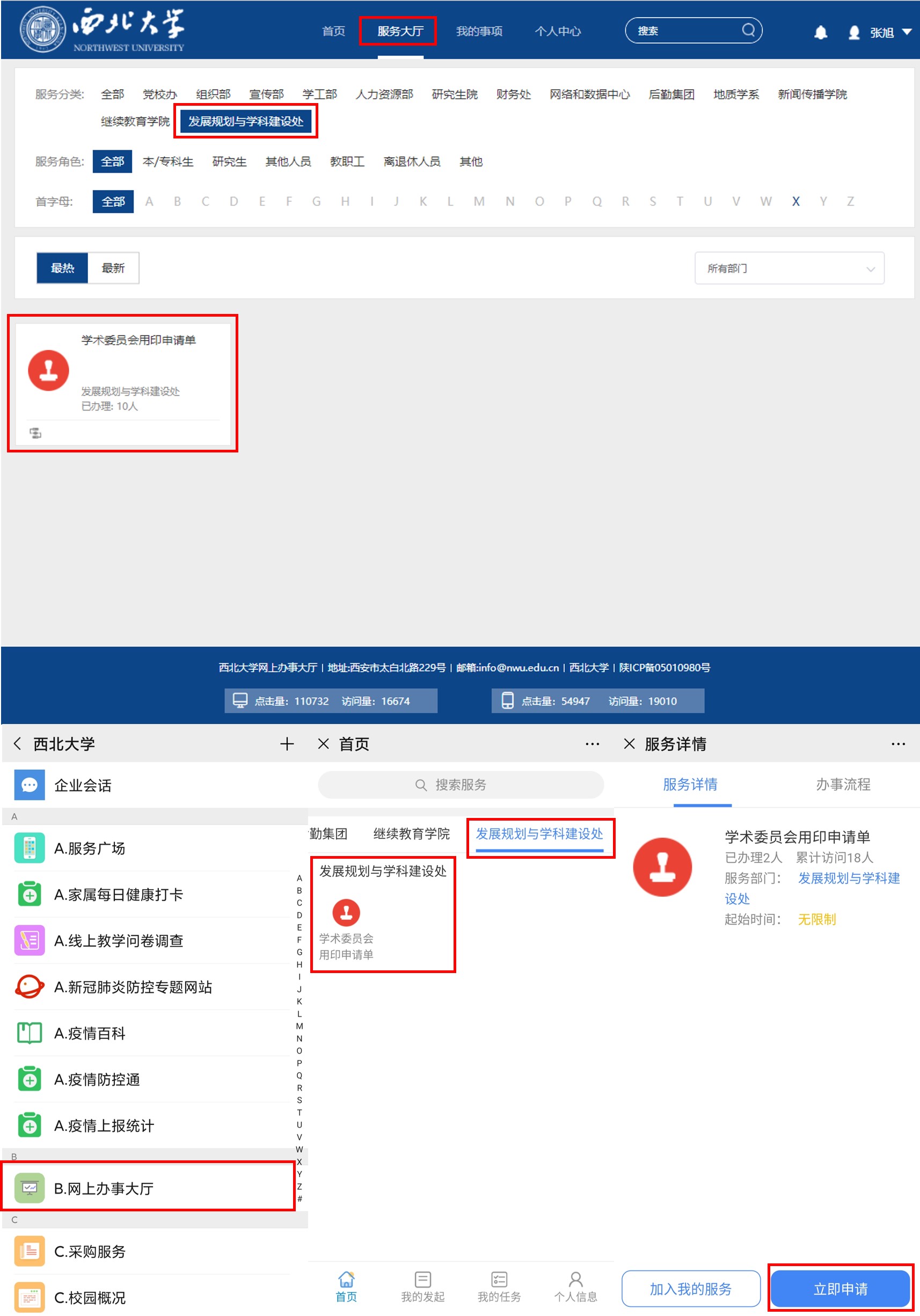 为保证服务保障工作有序开展,进一步提高办事效率和服务质量,在网络和数据中心的支持下,我处于即日起启用学术委员会用印申请信息化服务平台。