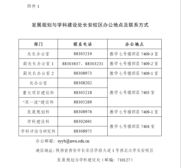 附:1.发展规划与学科建设处长安校区办公地点及联系方式